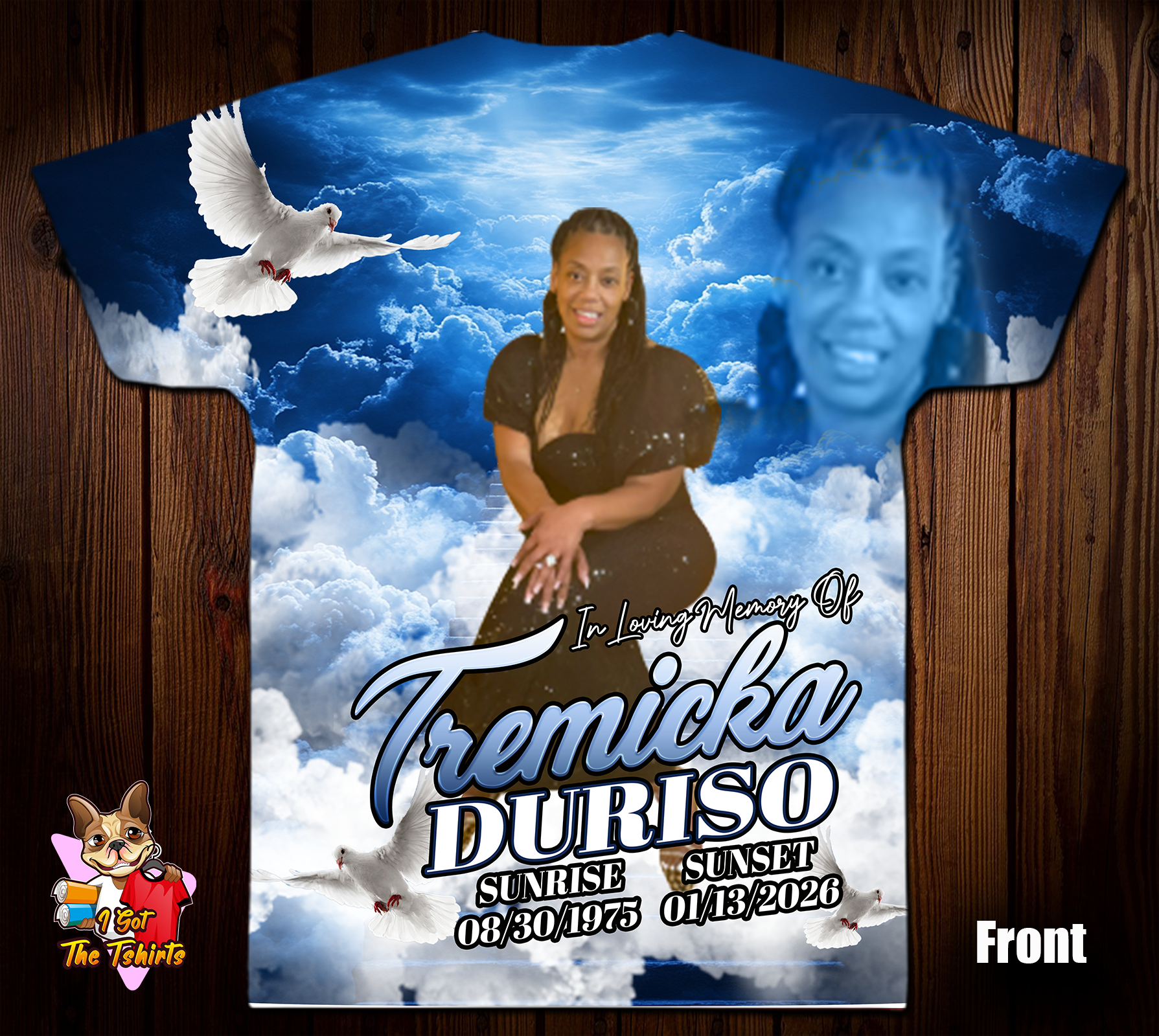 The allover print features a thoughtful collage of images, symbols, and dates that encapsulate the essence of your memories. This wearable memorial is a powerful way to keep the spirit and legacy of your loved ones alive, allowing you to carry their presence with you wherever you go.